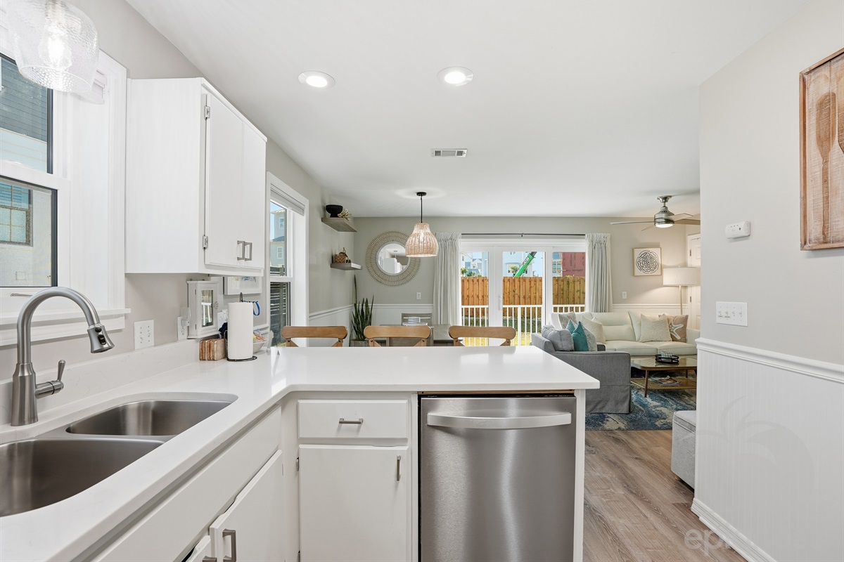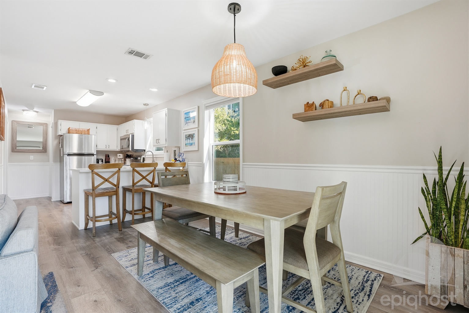 Inside, the open living area is inviting and easy to settle into, with comfortable seating and Smart TVs with DirecTV streaming for downtime between outings. The kitchen is fully equipped for quick breakfasts before the beach, lunch breaks at home, or relaxed dinners after a day exploring Seagrove and nearby beach towns.